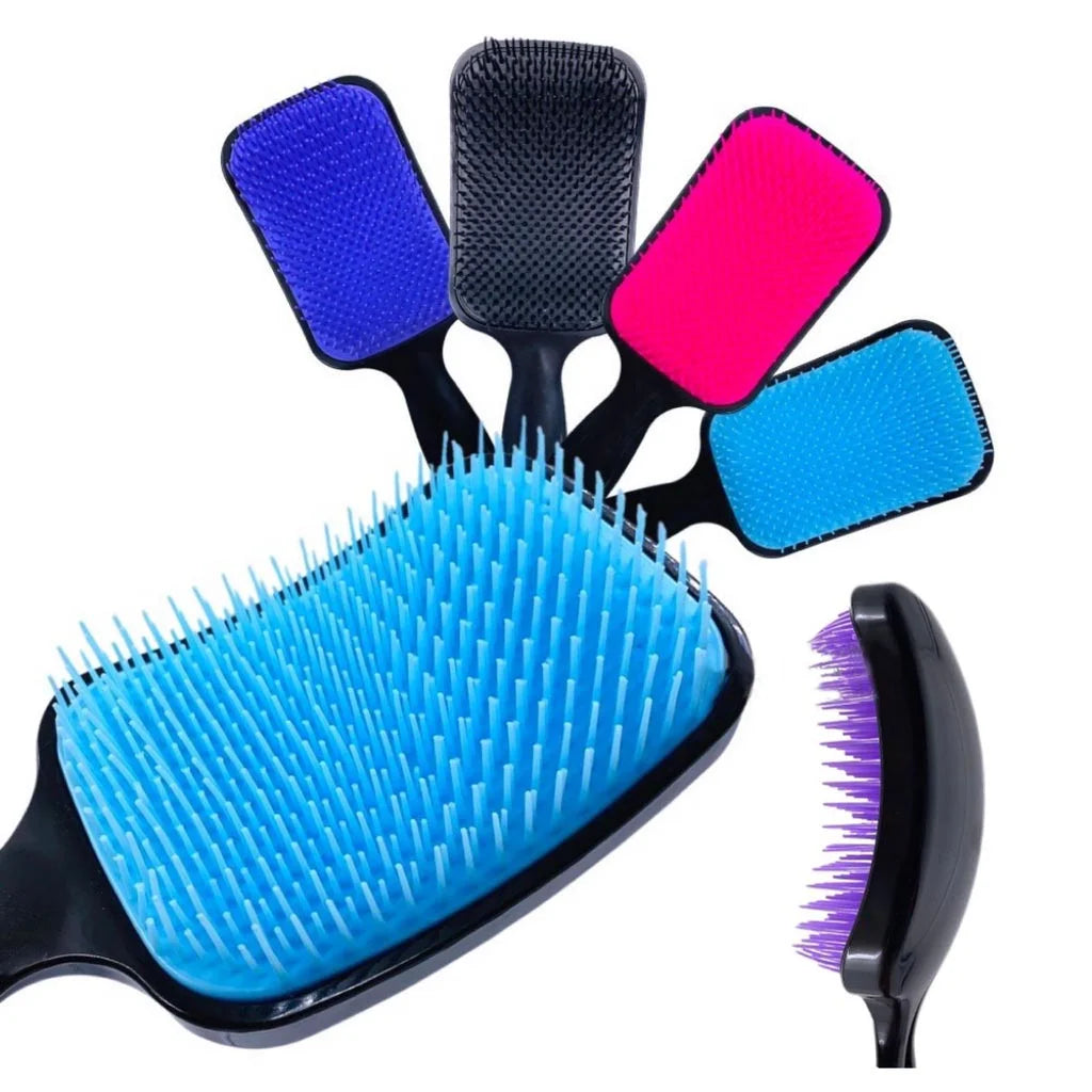 A Escova Desembaraçadora Raquete Flexível foi desenvolvida para desembaraçar os fios com mais facilidade, evitando quebras e puxões.