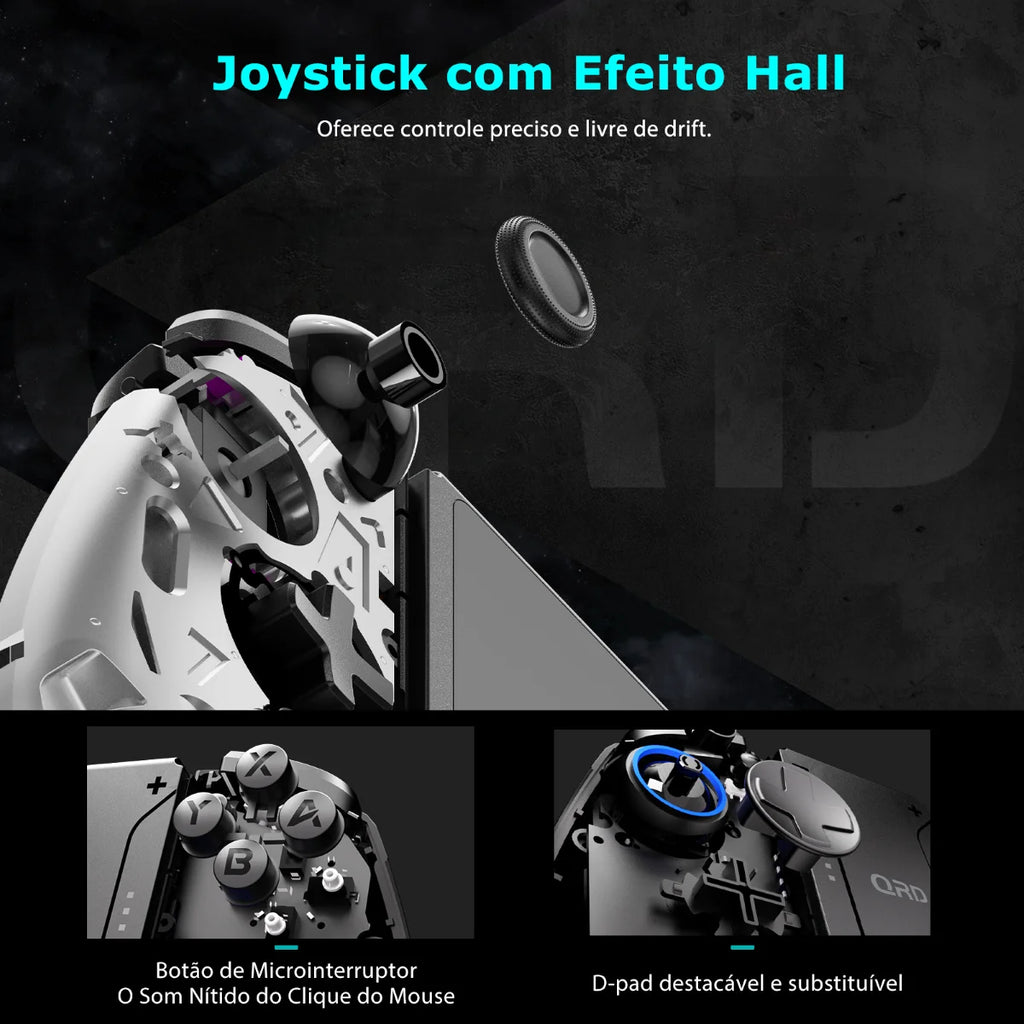 Equipado com joysticks com tecnologia Hall Effect, que ajudam a reduzir problemas de drift e proporcionam maior precisão nos movimentos.